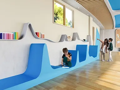 Durasein’s resin solid surface is meant for indoor usewith many possibilities like countertops, wall cladding, partitions, architectural elementals, benches, and more.