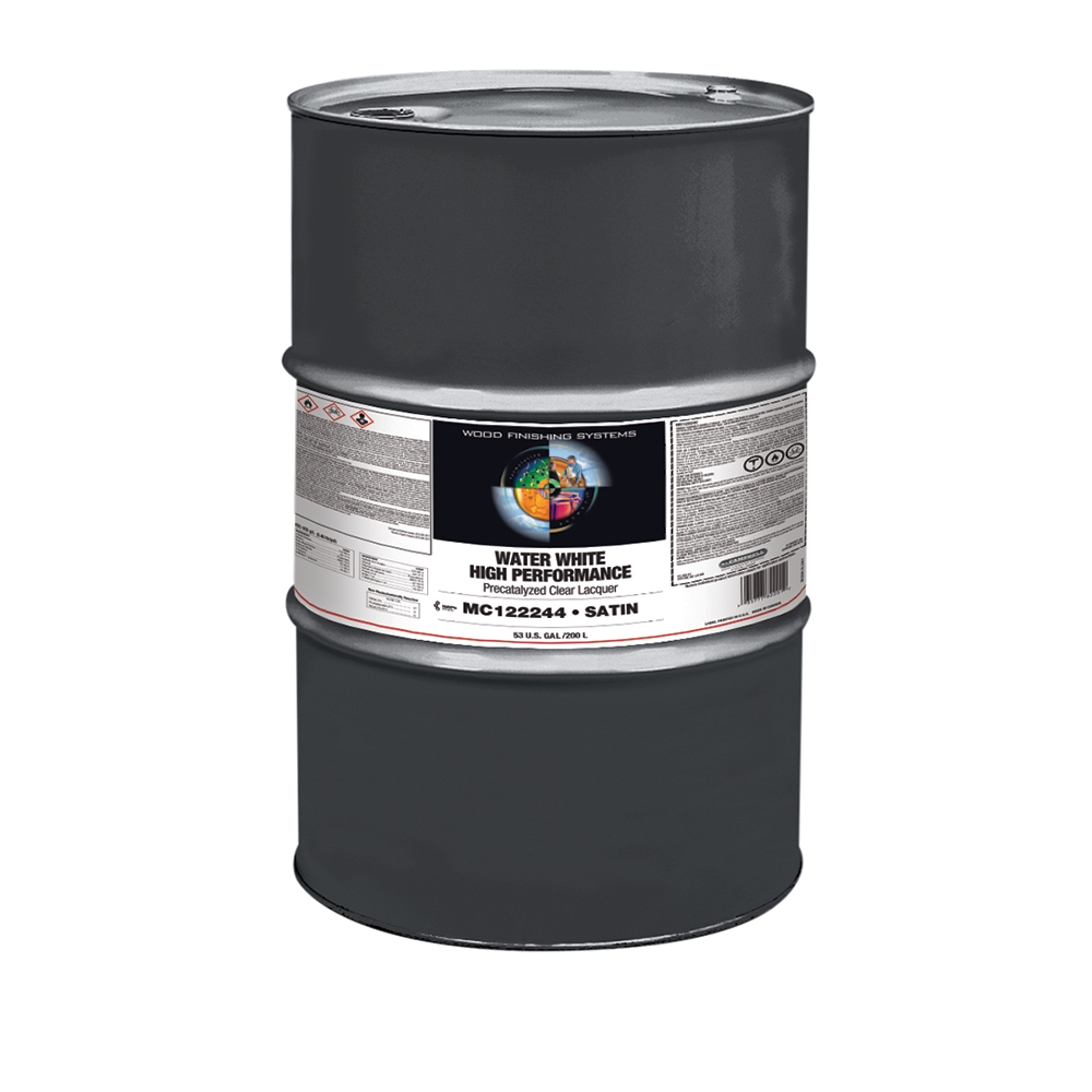High Performance Water White Pre-Cat Clear lacquer is a high quality, self-sealing, fast dry formulation that has exceptional resistance to water, solvents, and household chemicals. This product represents the latest in durable, long lasting wood finishing technology and features a HAPS-free formulation with ultra low formaldehyde.